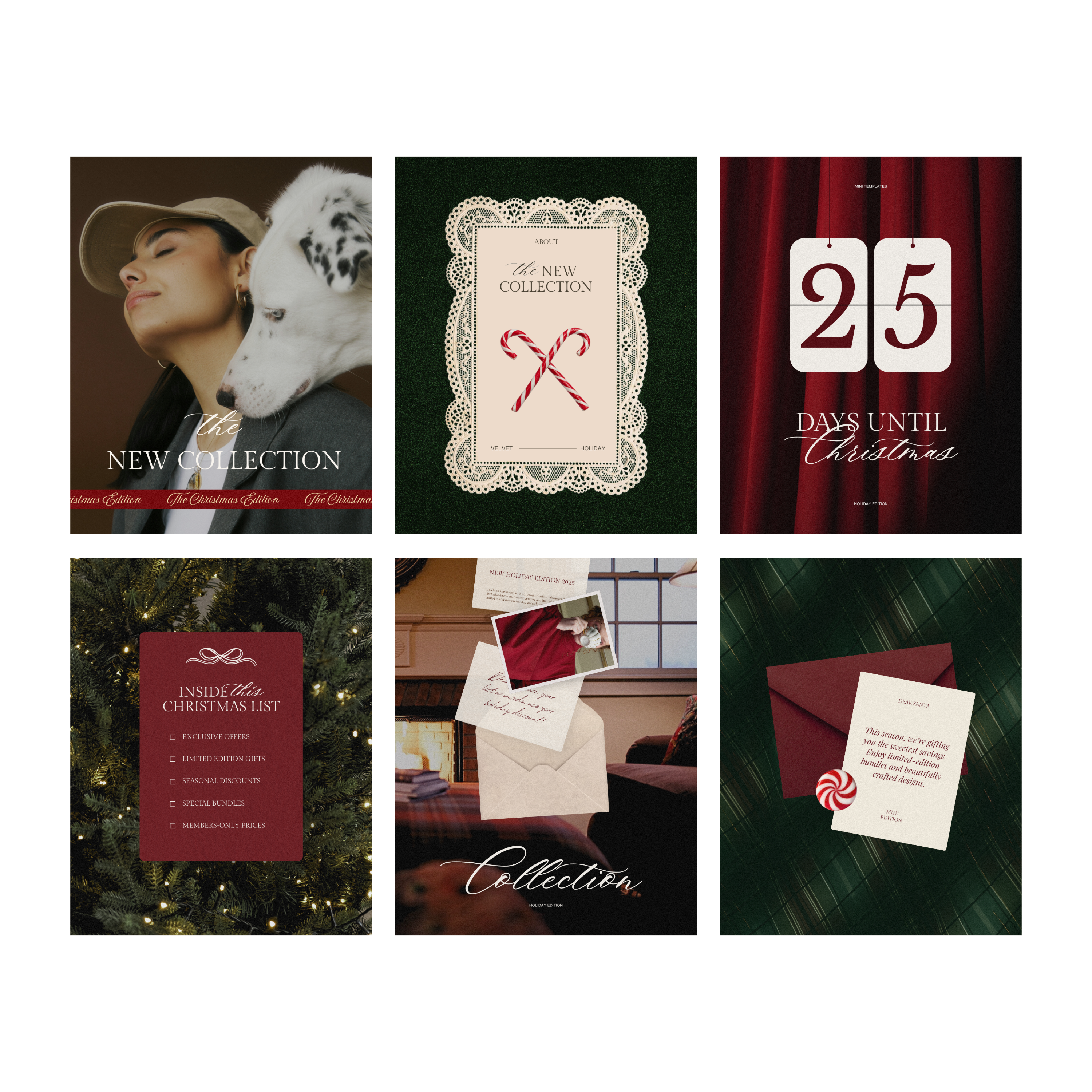 AN EARLY CHRISTMAS GIFT FOR YOU: FULLY EDITABLE “VELVET HOLIDAY” TEMPLATES, DESIGNED TO ELEVATE YOUR FEED THIS SEASON.